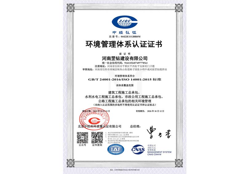 河南罡鉆環(huán)境管理體系認(rèn)證證書